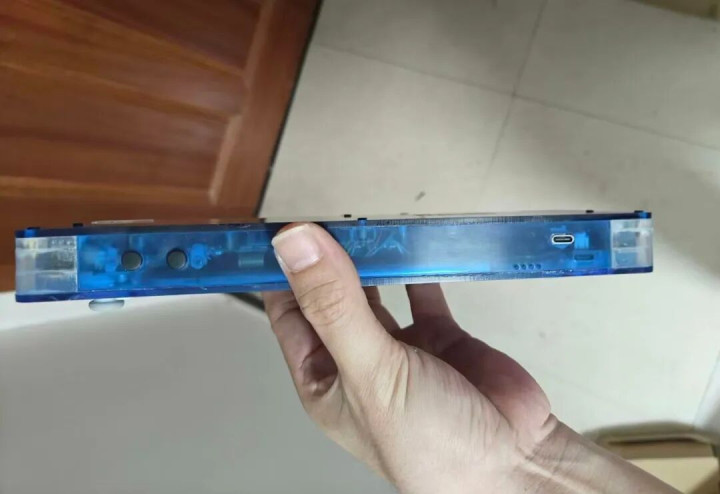 没错,它的外壳不是用3D打印的,而是手工制作的亚克力外壳。可以做成各种各样的半透明颜色,比如蓝透、粉透和白透,让我想起了GBA掌机就有各种各样的透明版。